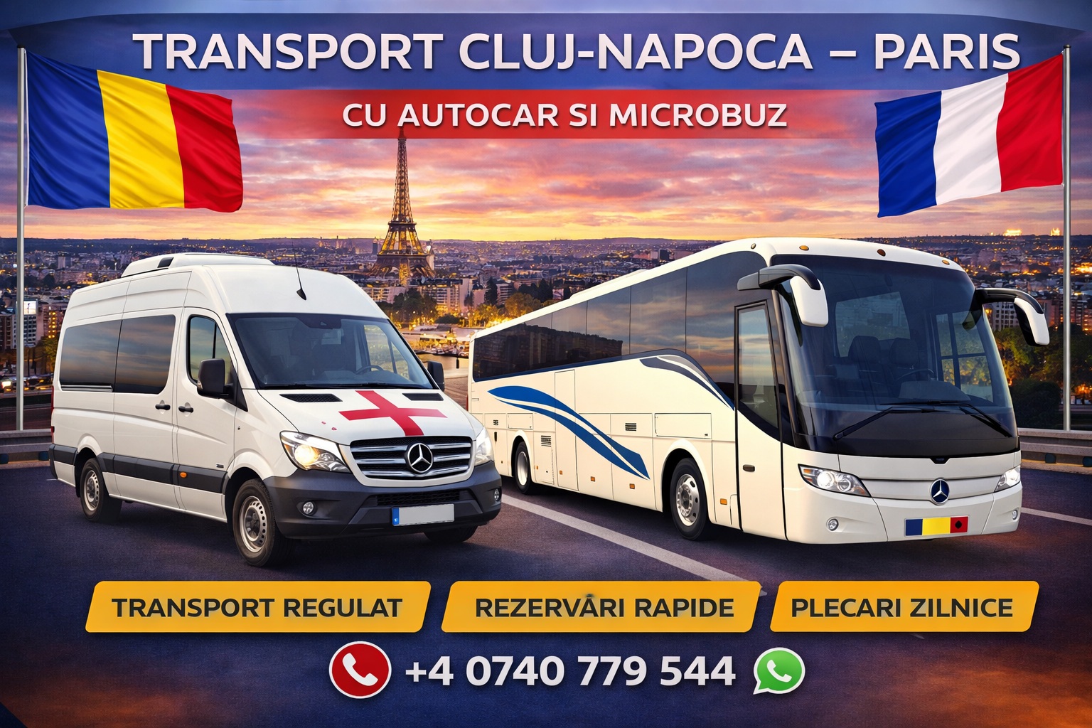 Pentru cei care caută transport persoane Cluj Napoca Paris, această rută este potrivită atunci când contează seriozitatea, claritatea rezervării și un drum planificat atent până în Franța. Plecarea din Cluj Napoca este gândită pentru pasageri care vor o soluție practică, fie că merg la muncă, la rude sau au nevoie de o deplasare programată fără complicații inutile.